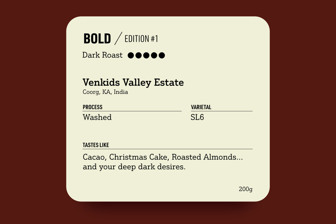 Imagine a syrupy cup of dark hot chocolate on a winter day, and hey, of course there’s some Christmas cake with roasted almonds just for good measure. This coffee’s got so much body you can practically eat it.